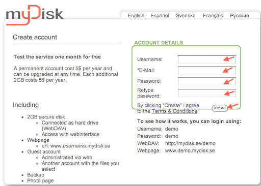 連結上https://mydisk.se/,點選new account